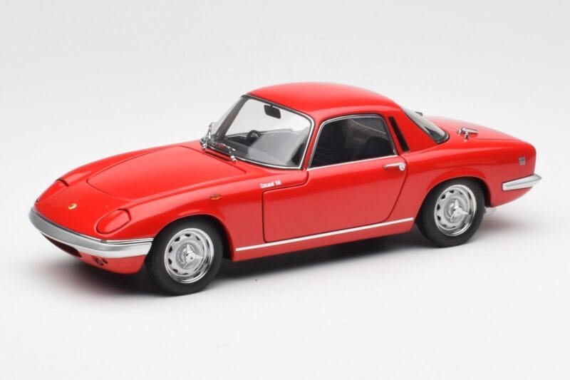 The Lotus Elan S2 SE Coupe Raudonas AUTOart 1:18 is crafted from Metalas. Die-cast zinc alloy body with detailed plastic parts, rubber tires, and high-quality paint finish. Die-cast models are known for their weight, durability, and realistic feel.