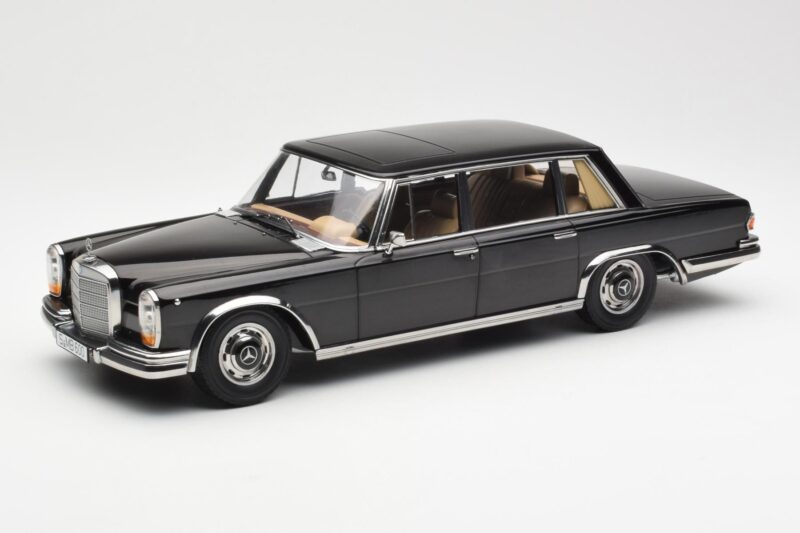 The Mercedes 600 SWB W100 Juodas KK-Scale 1:18 is crafted from Metalas. Die-cast zinc alloy body with detailed plastic parts, rubber tires, and high-quality paint finish. Die-cast models are known for their weight, durability, and realistic feel.