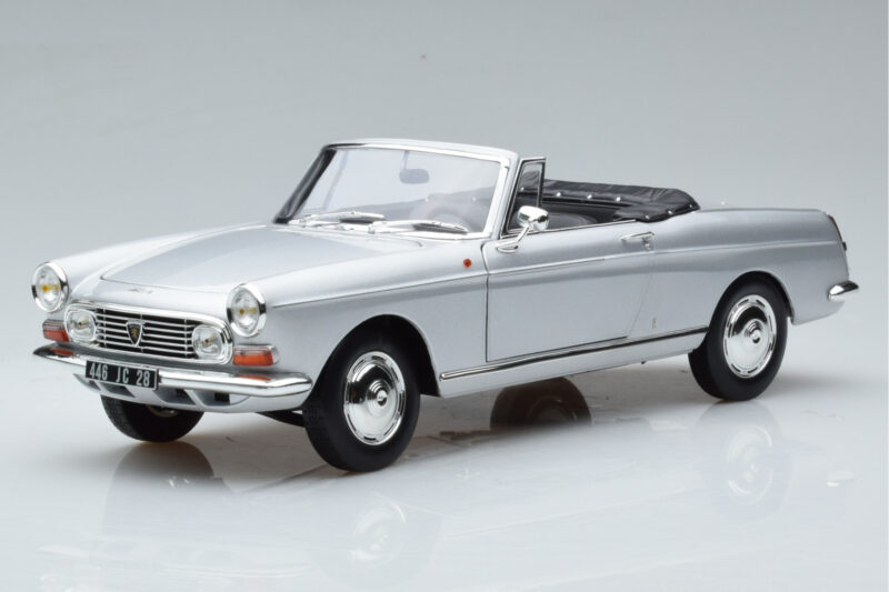 The Peugeot 404 Kabrioletas Sidabrinis Norev 1:18 is crafted from Metalas. Die-cast zinc alloy body with detailed plastic parts, rubber tires, and high-quality paint finish. Die-cast models are known for their weight, durability, and realistic feel.