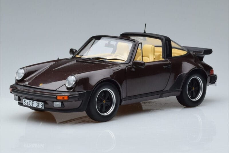 The Porsche 911 964 Turbo Targa Ruda Norev 1:18 is crafted from Metalas. Die-cast zinc alloy body with detailed plastic parts, rubber tires, and high-quality paint finish. Die-cast models are known for their weight, durability, and realistic feel.