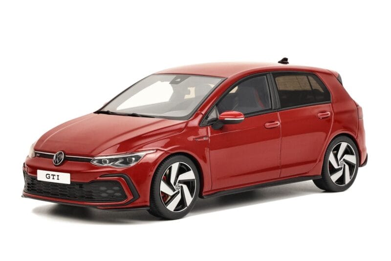 A 1:18 scale model measures approximately 25-28 cm (approximately 10-11 inches). The Volkswagen Golf GTI Mk8 Raudonas Otto 1:18 is perfect for display in a glass cabinet or on a shelf.